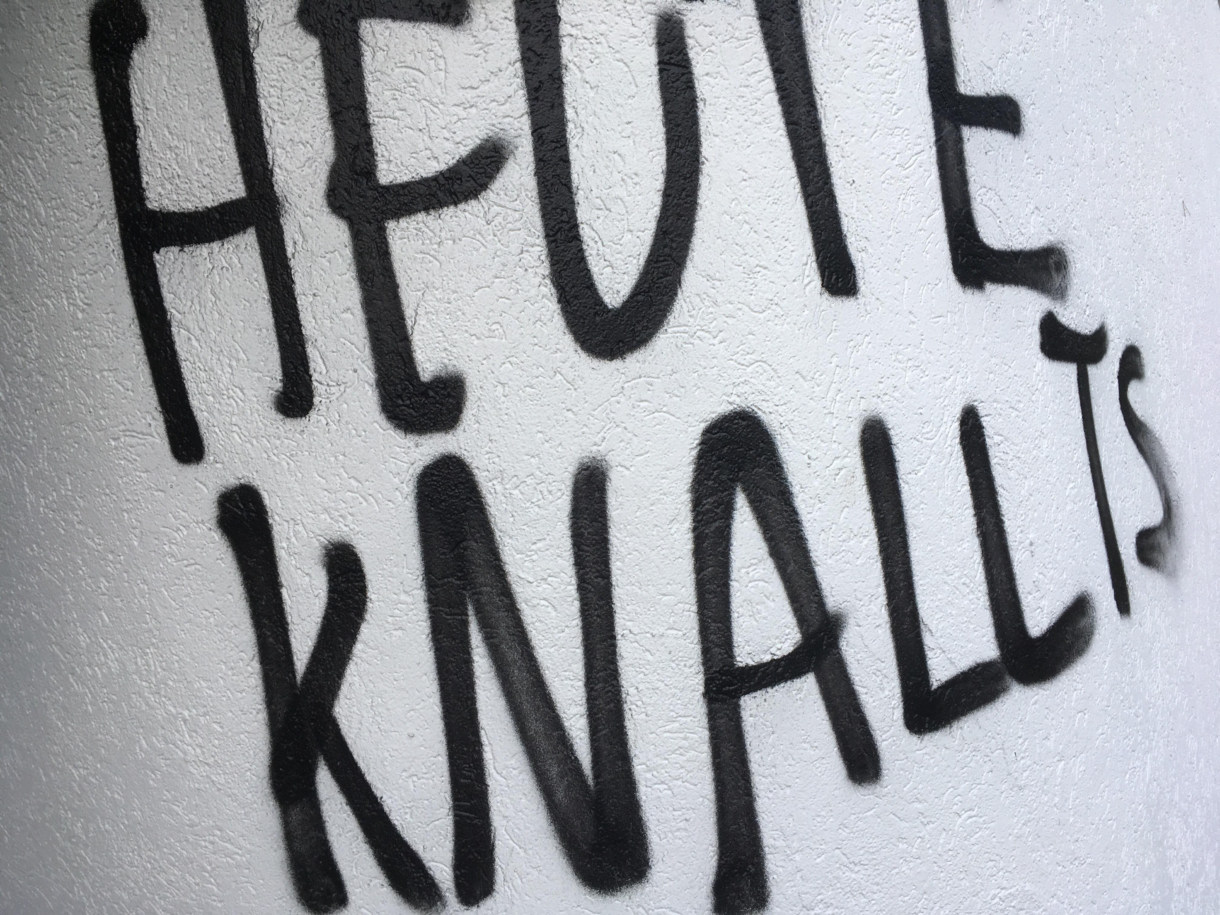 Als Oglivies Mann heute Morgen aufwachte, musste er feststellen, dass seine Familie in der Nacht Besuch bekommen hatten. In einem Zimmer war die Fensterscheibe eingeworfen und der ganze Raum mit brauner Farbe verwüstet, auf der Fassade ein riesiger Farbklecks. Daneben: „Heute knallt’s“