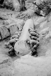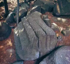 Laut offi­zi­ellen Ero­si­ons­quellen wurden die Fels­brocken ent­deckt, einige davon wurden angeblich von den Römern vor Ort bear­beitet, aber nie mitgenommen.